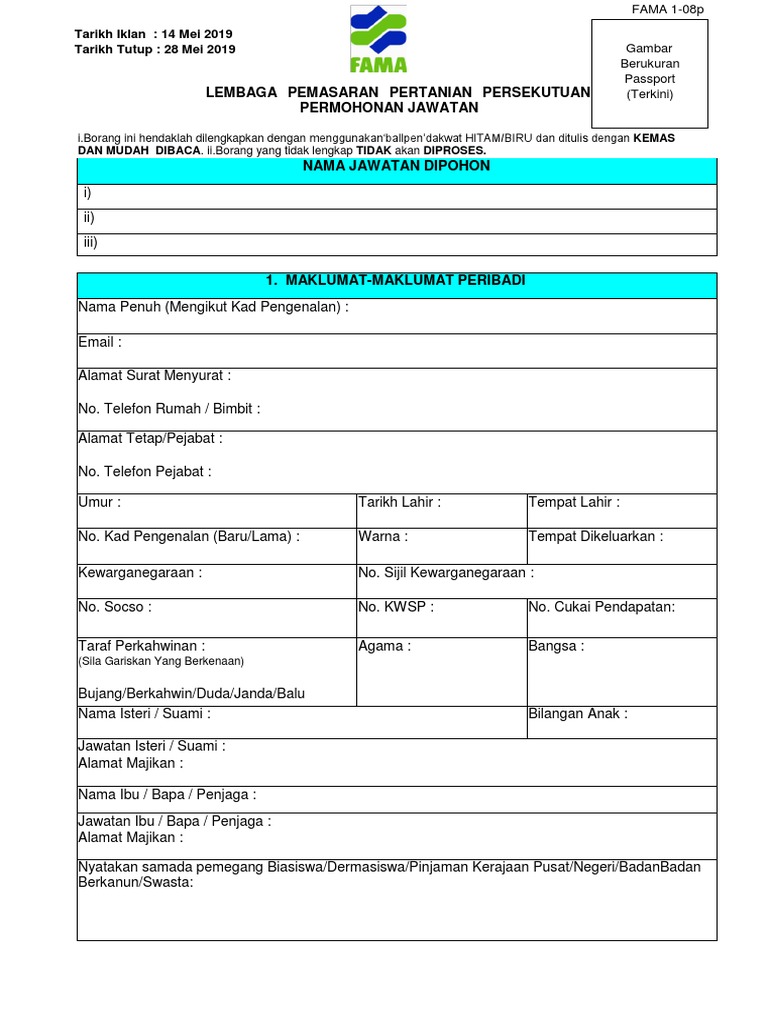 2019 yang anda boleh muatturun di pautan yang kami telah sediakan dibawah. Cara cara memohon jawatan guru tabika kemas. Permohonan akan ditolak sekiranya borang permohonan gagal menggunakan borang kemas pin. Pendapatan keluarga diisi oleh ibu bapa penjaga i maklumat keluarga.