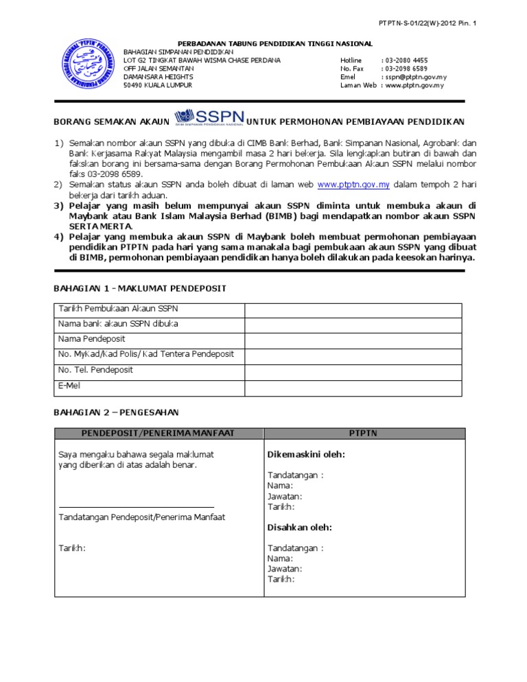 Borang permohonan pembukaan akaun sspn i. 03 2193 3000 faks.