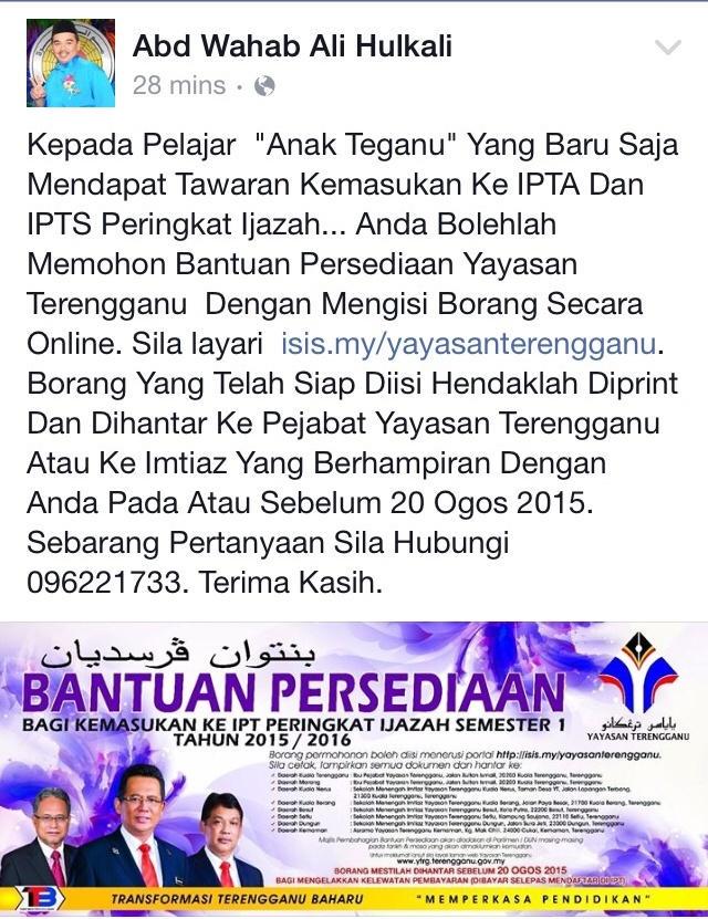 Permohonan biasiswa yayasan terengganu tahun 2020. Sinar harian memaparkan berita edisi berita terkini sinar sinar harian online sinar online sinarharian berita harian berita popular edisi kelantan edisi terengganu edisi pahang edisi mns edisi johor edisi perak edisi utara edisi pantai tim. Dokumen lampiran bantuan persediaan boleh di hantar selepas perintah kawalan pergerakan kenyataan media pembatalan penganjuran majlis anugerah sarjana terengganu tahun 2019 borang anugerah kecemerlangan pelajar tahun 2020 spm stpm stam 2019. Sbb sy tolong uruskan persediaan adik2 sy sebelum ni 1 adik ke peringkat diploma 1 lagi adik ke peringkat ijazah luar negara memang kena mohon online dulu pastu print dan dapatkan lah pengesahan2 bagi dokumen yg dinyatakan dlm borang yg dah diprint tu.