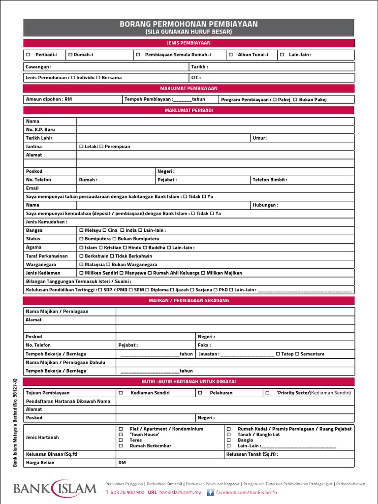 Borang Permohonan Pinjaman Perniagaan Bank Islam