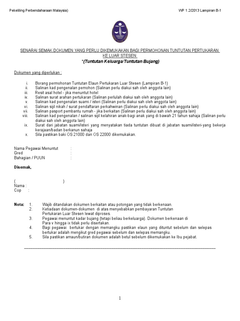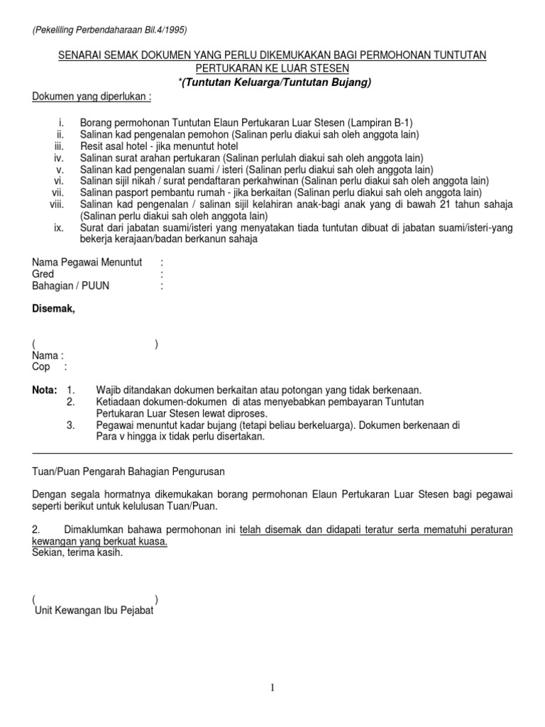 B tuntutan ini dibuat mengikut kadar dan syarat seperti yang dinyatakan di bawah peraturan peraturan bagi pegawai bertukar yang berkuatkuasa semasa. 1 0 pastikan tuntutan perpindahan rumah dalam stesen yang sama diterima dan dokumen sokongan disertakan. Senarai semak tuntutan perpindahan dalam negeri luar stesen. 1 ogos 2014 tarikh kuatkuasa.