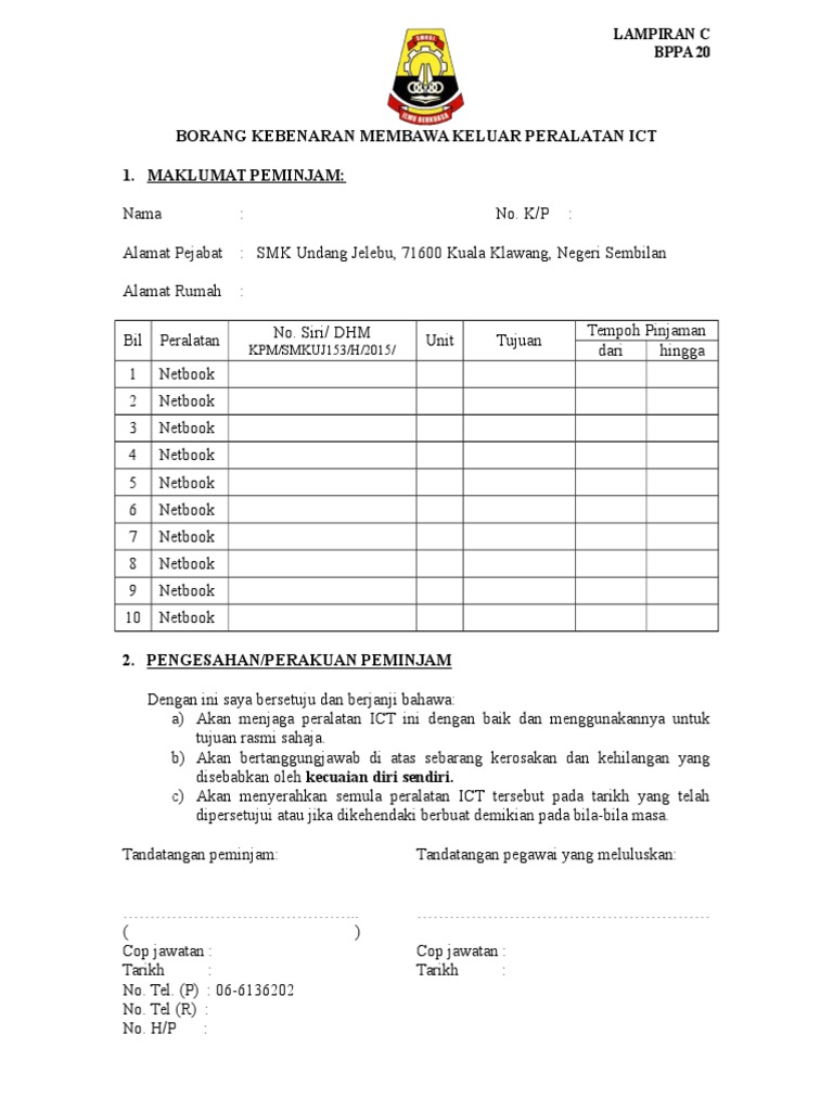 Borang Pinjaman Komputer Kpm