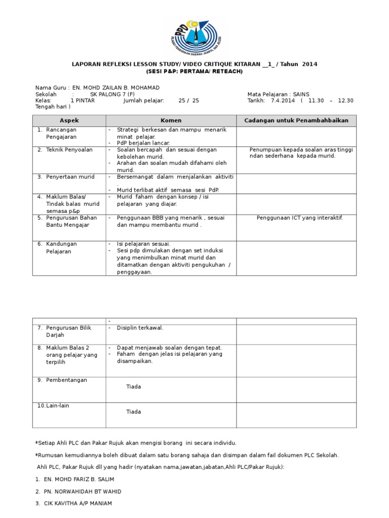 Lesson study boleh dilaksanakan dengan langkah langkah seperti berikut. Plc ialah singkatan kepada program professional learning communities. Lesson study panduan dan contoh download borang info guru plc professional learning community atau lebih dikenali sebagai plc merupakan pemangkin profesionalisme guru ke arah peningkatan pembe. Ridzuan nama penyelaras ppd.