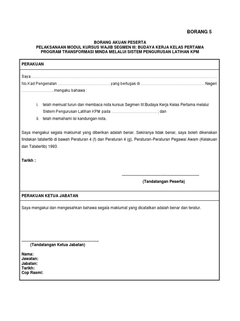 Borang program transformasi minda kpm 2019. Ptm juga merupakan satu daripada syarat pengesahan dalam perkhidmatan bagi menggantikan kursus induksi. Sila masukkan no kad pengenalan anda. Surat tawaran peserta siri 4 2019 beserta senarai nama maklumat kursus lampiran a borang pengesahan kehadiran lampiran b dan jadual waktu program. Unit pengurusan sumber manusia.