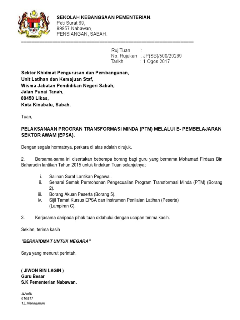 Institut latihan sektor awam negeri sabah insan tingkat 7 blok b wisma muis beg berkunci no 97 88999 kota kinabalu sabah. Institut latihan sektor awam negeri sabah insan tingkat 7 blok b wisma muis beg berkunci no 97 88999 kota kinabalu sabah. Apakah tujuan pelaksanaan program transformasi minda. Unit pengurusan sumber manusia.
