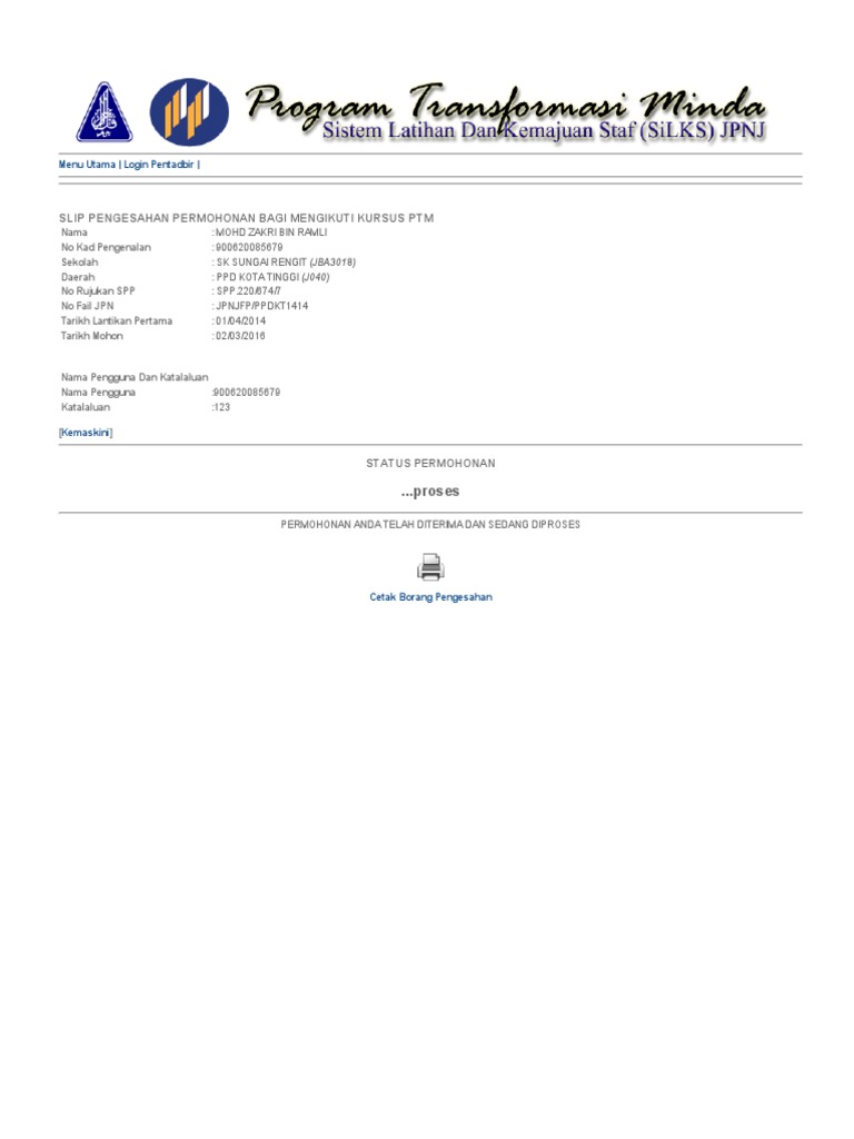 E pembelajaran sektor awam epsa secara one off bagi warga kerja kementerian pendidikan malaysia kpm lantikan tahun 2014 hingga 2016. Setiausaha bahagian bahagian khidmat pengurusan kementerian kesihatan malaysia aras 7 8 blok e7 kompleks e 62590 putrajaya u p. Pengakuan pemohon saya mengesahkan bahawa semua maklumat yang diberi adalah benar. Surat pekeliling perkhidmatan ini bertujuan menjelaskan mengenai pelaksanaan program transformasi minda ptm sebagai satu daripada syarat pengesahan dalam perkhidmatan bagi menggantikan kursus induksi selaras dengan saraan baru perkhidmatan awam sbpa.
