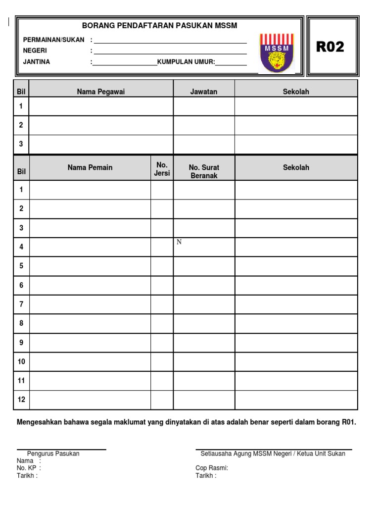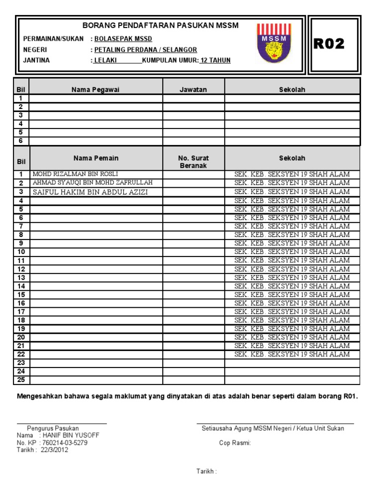 Borang r02 bola tampar. Berorganisasi dan mencari pelapis pelapis yang akan mewakili sekolah bagi tahun yang akan datang 2 0. 1 1 selain daripada peraturan peraturan lain yang terkandung pertandingan dan undang undang perlawanan yang dijalankan adalah mengikut undang undang bola tampar mava dan fivb yang terkini atau yang sedang berkuatkuasa. Qr code akademi bola sepak skpt. Memupuk semangat kesukanan para pelajar.