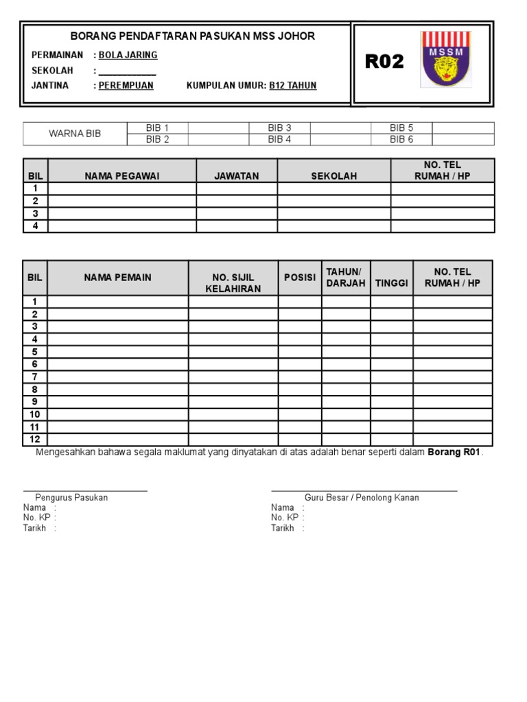 Borang pendaftaran m01 m02 r01 dan r02 untuk guru. Newer post older post home. Borang makluman akt luar. Borang r01 pendaftaran pemain mssm borang pendaftaran pemain r01.