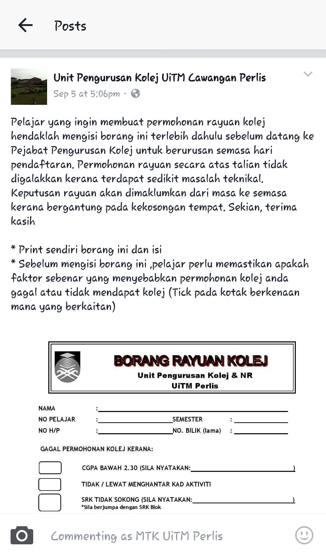 Borang rayuan kolej uitm perlis. 24 julai 2020 jumaat 24 ogos 2020 isnin. Tan sri dato sri sallehuddin mohamed pro canselor uitm. 402 ialah kakitangan bukan akademik. Istiadat yang berlangsung dalam empat sidang menyaksikan seramai 945 graduan masing masing menerima ijazah dan diploma daripada ybhg.