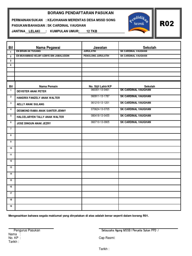 Borang ro2 sarawak. Share to twitter share to facebook share to pinterest. Muat turunkan borang tersebut sebelum dilengkap. Borang r01 pendaftaran pemain mssm borang pendaftaran pemain r01. Borang m02 r02 borang m01 r01 bergambar.