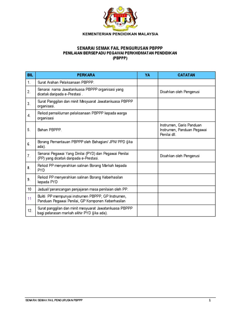 Salinan borang pemantauan pelaksanaan pbppp oleh bahagian jpn ppd jika ada. Huraian senarai semak instrumen pbppp power point 3. Senarai semak fail pengurusan pbppp 2019 1 senarai semak fail pengurusan penilaian bersepadu pegawai perkhidmatan pendidikan pbppp bil perkara ya catatan 1. Bahagian i vitae kurikulum vitae.