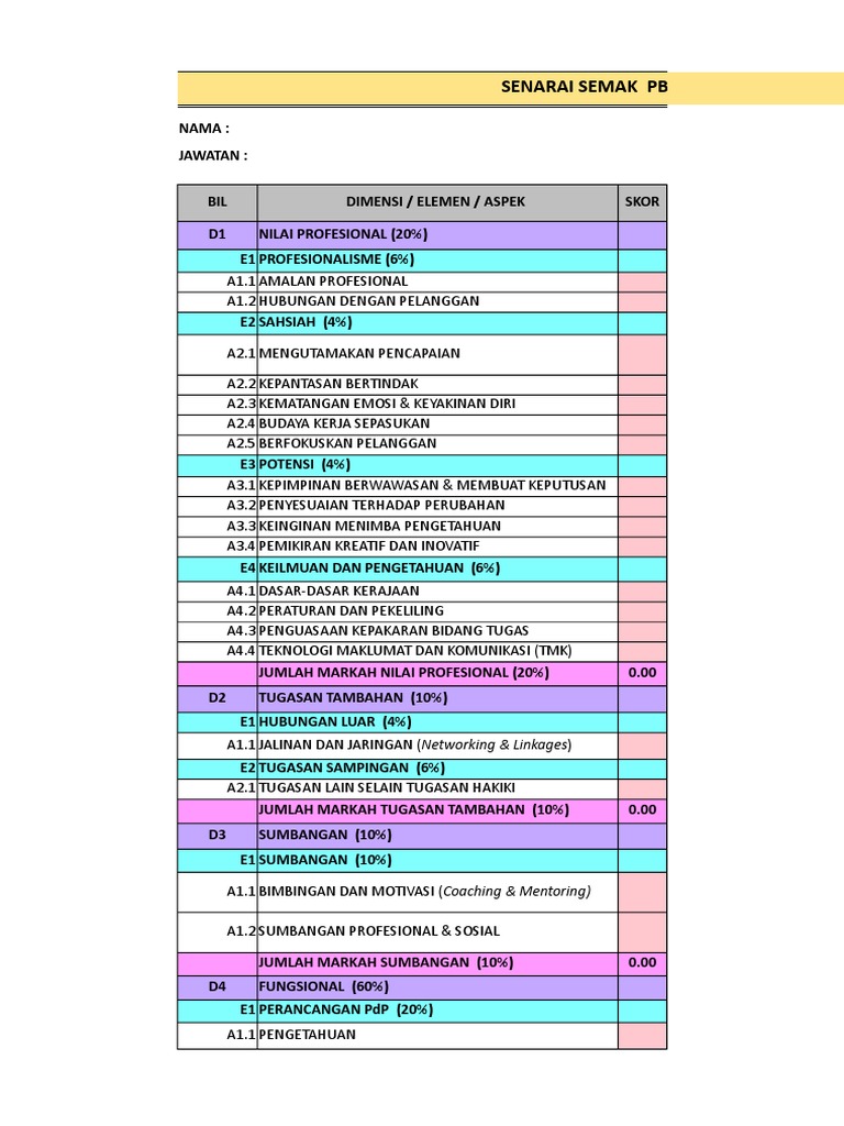 Borang senarai semak pbppp. Bahagian ii instrumen generik d1 profesionalisme e1 nilai profesional a1 1 amalan profesional senarai semak. Boleh diubahsuai mengikut keperluan sekolah. Senarai semak fail pbppp by nadia saidon. Baca di sini.