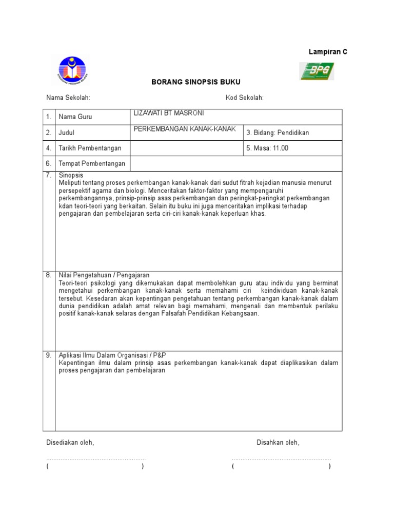 Borang sinopsis buku latihan dalam perkhidmatan ldp nama sekolah 1 2.