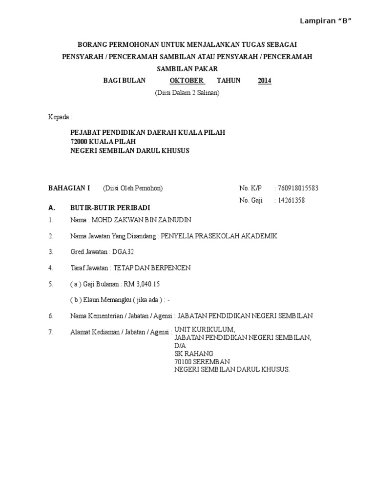 Borang permohonan untuk menjalankan tugas sebagai. Kadar bayaran penceramah berasaskan kelayakan akademik bagi individu bukan kakitangan kerajaan swasta dan pesara kerajaan selaras dengan. Pensyarah penceramah pakar atau fasilitator bagi bulan tahun mengikut pekeliling perbendaharaan bil. Dalam borang permohonan penceramah jumlah lebihan tuntutan kementerian jabatan agensi sertakan surat akuan daripada kementerian jabatan agensi bil dan tarikh hendaklah diisi dengan lengkap untuk memulangkan balik lebihan bayaran saguhati yang diterima.