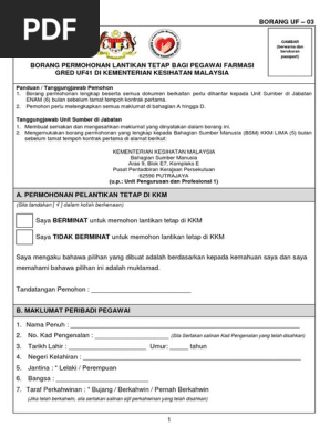 No kad pengenalan lama 4. Borang penyertaan akan diisi pada hari pertama kedatangan. Borang penilaian tahunan pegawai farmasi gred uf41 lantikan kontrak di kkm borang uf 02 pemarkahan.