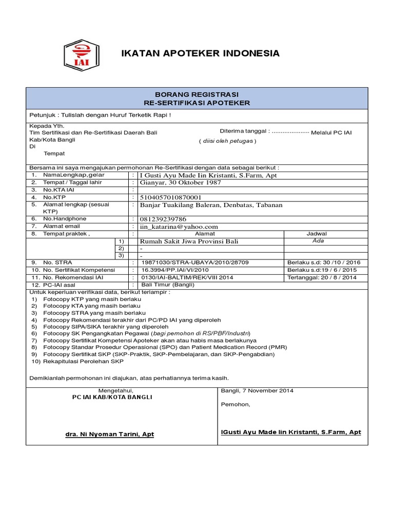 Pedoman praktik apoteker indonesia tahun 2013 14. Contoh pengisian borang resertifikasi 70 skp. Standar praktik apoteker indonesia tahun 2013 13. Contoh soal psikotes rumah sakit dan jawabannya dari sisi wawancara tersebut merupakan pengalaman yang pernah penulis dapatkan.