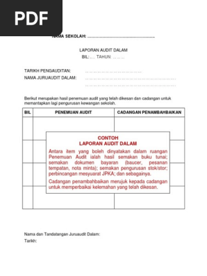 1995 dibentuk bahagian audit sekolah. Laporan audit dalaman spk upm 2013 1 1. 01 tarikh kuatkuasa. Kerja kerja pengauditan ini tertakluk kepada banyak pekeliling yang dikeluarkan oleh kerajaan.