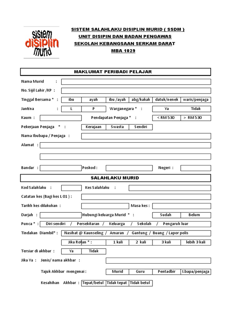 Contoh Borang Disiplin Pekerja