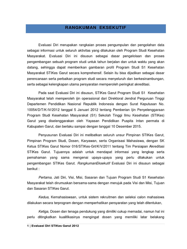 Laporan evaluasi diri ini juga dilengkapi borang dan portofolio akreditasi sebagai bahan untuk evaluasi program studi. Universitas padjadjaran bandung indonesia. Dosen dan tenaga pendukung 20 d. Mekanisme kerja penyusunan laporan evaluasi diri bab ii.