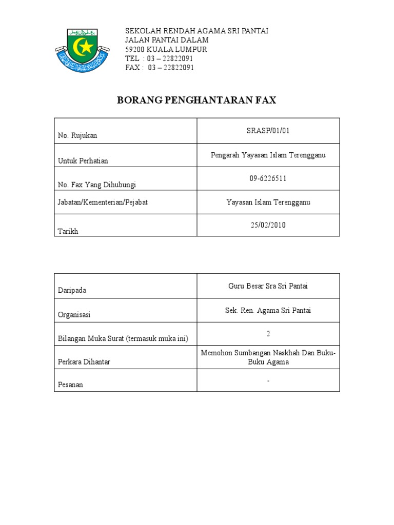 Contoh borang faks. Assalammualaikum pada kali ini ingin saya kongsikan format borang penghantaran dokumen melalui fax. Pengarah yayasan islam terengganu untuk perhatian. 2 2 2010 4 23 00 am other titles. Tempoh permohonan akan dibuka sehingga 31 oktober 2020 dan pembayaran akan dibuat bermula pada julai hingga november 2020.