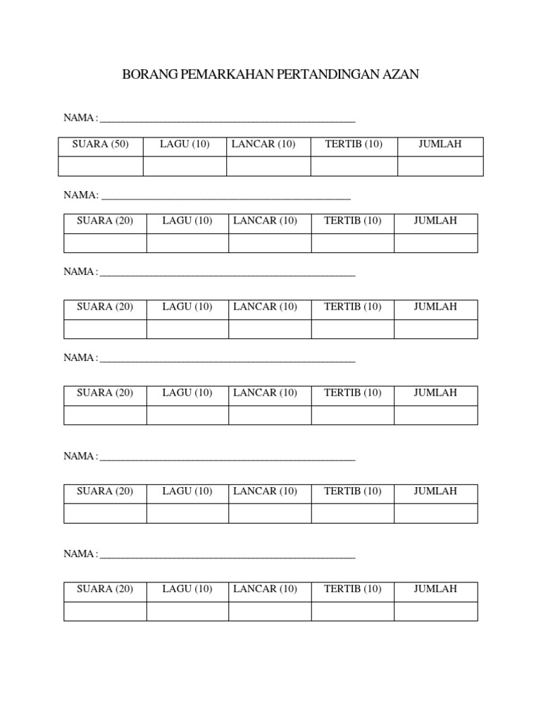 Contoh Borang Hakim Pertandingan Azan