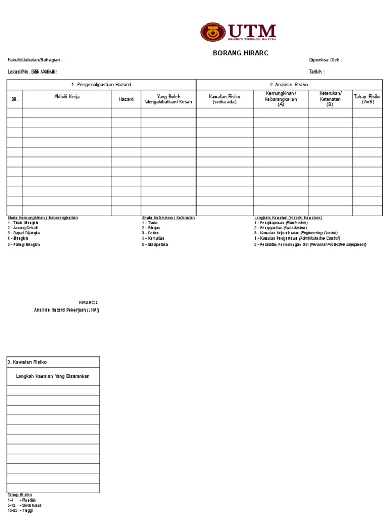Latihan lampiran a contoh hazard di tempat kerja lampiran b senarai semak contoh hazard di tempat kerja lampiran c borang hirarc lampiran d contoh mengisi borang. Borang hirarc 2016 kkp hirarc jha sop. Norrazman zaiha bin zainol email. Hirarc is one way to identify potencial hazard that accompany any type of job.