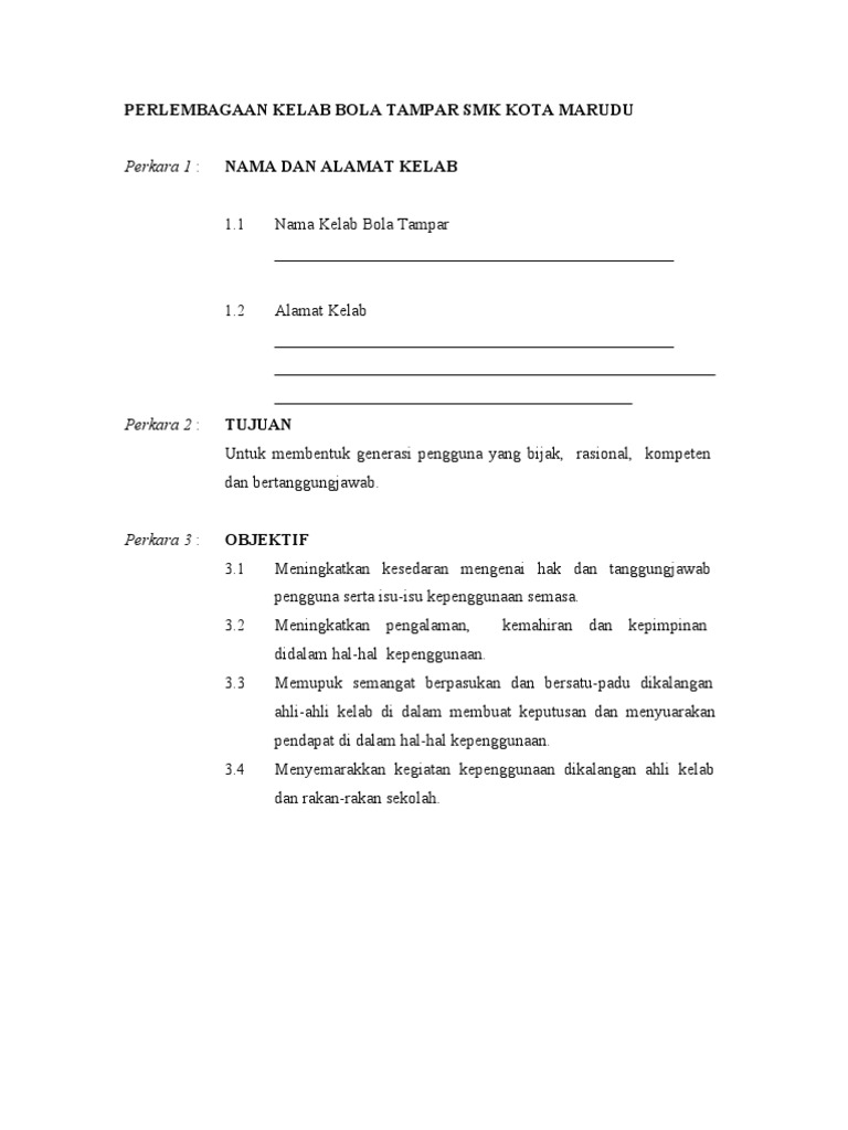 Perlembagaan kelab bola sepak 1. Labuan ksr nombor pendaftaran pertubuhan. Akademi bola sepak gading emas ditubuhkan oleh en. Perlembagaan kelab bola sepak hulu rajang fasal 1.