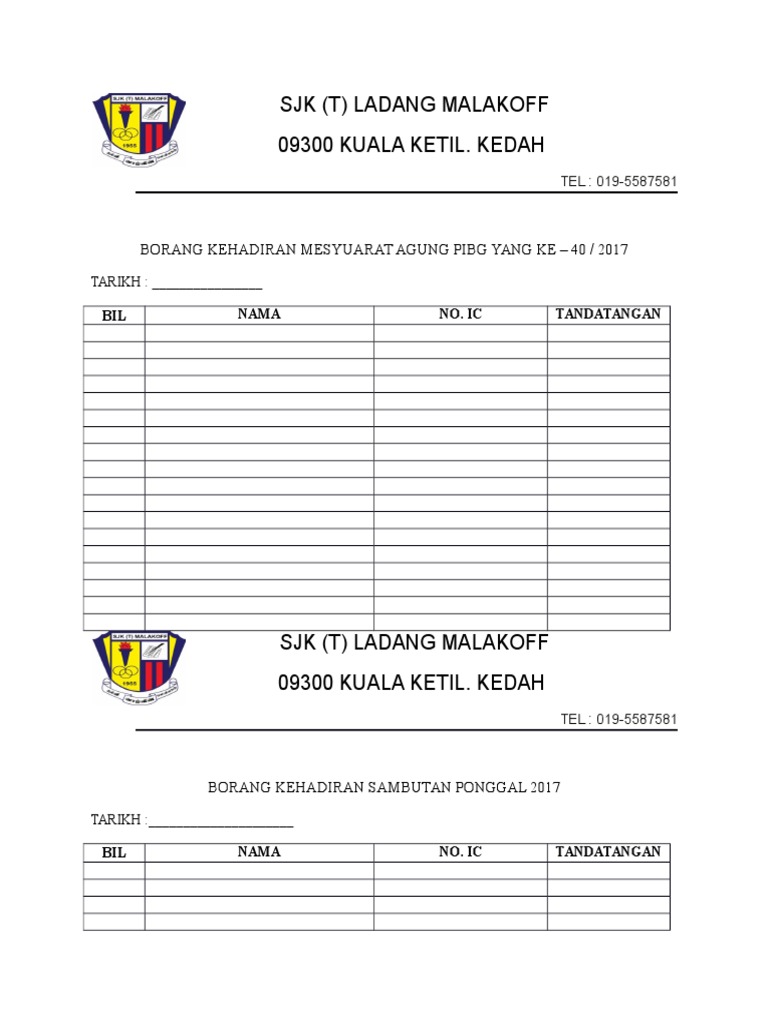 Contoh Borang Kehadiran Mesyuarat Pibg