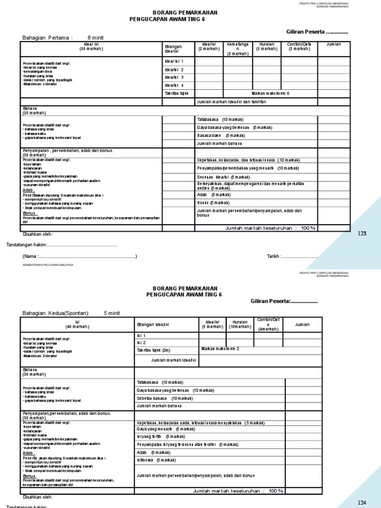 2 1 1 dengan berpandukan kepada ciri ciri penilaian dan pemilihan sepertimana yang terkandung dalam borang pemarkahan di lampiran 4 dan lampiran 5 jawatankuasa anugerah perkerja cemerlang perkhidmatan awam peringkat kementerian berkenaan akan menilai dan memilih pegawai kakitangan yang terbaik bagi mewakili kementerian berkenaan. Borang pemarkahan pengucapan awam ting 6. Pidato abm 2014. Pengucapan awam seni pengucapan awam pengucapan awam idea dale carnegie dan ikut pengalaman uncle zuan pengucapan awam.