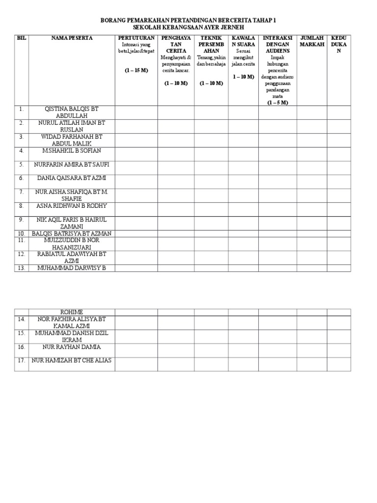 Contoh borang pemarkahan pertandingan bercerita. Search inside document. Surat pelaksanaan dan tema pertandingan. Kahoot live game bahasa arab tahun 6 kahoot live game bahasa arab tahun 5. Pertandingan pidato piala kpm sekolah menengahborang pemarkahan borang pemarkahan sekolah menengah pertandingan pidato piala kpm giliran peserta.