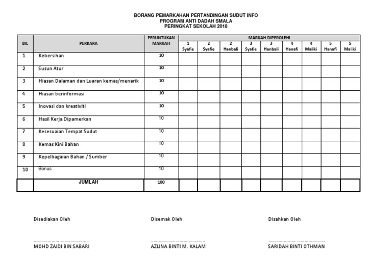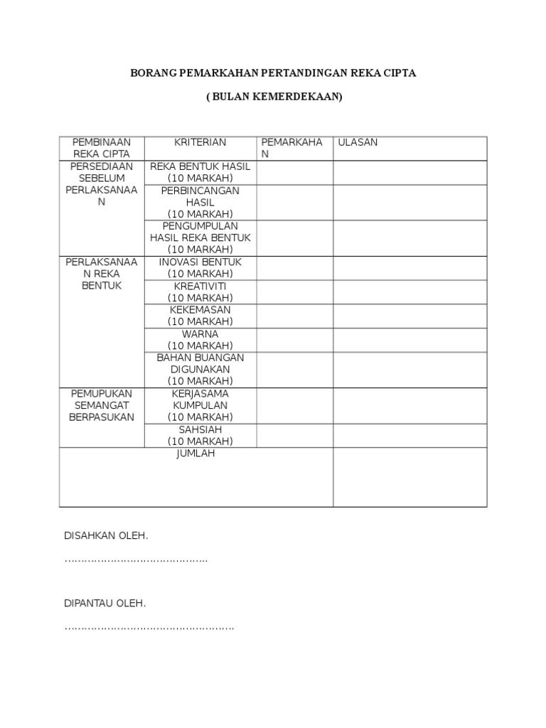 Kriteria penilaian dan pemarkahan 4 6. Borang pemarkahan pertandingan rekacipta. Pertandingan pidato piala kpm. Borang penilaian pertandingan inovasi dalam pengajaran dan pembelajaran.