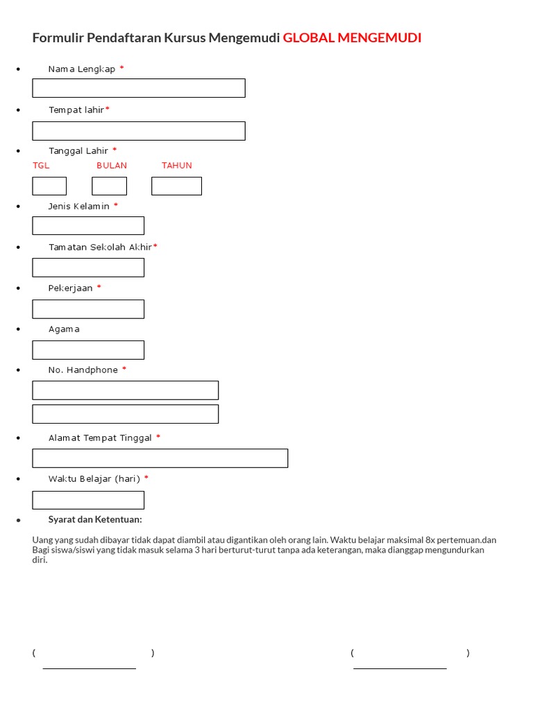 Contoh Borang Pendaftaran Kursus