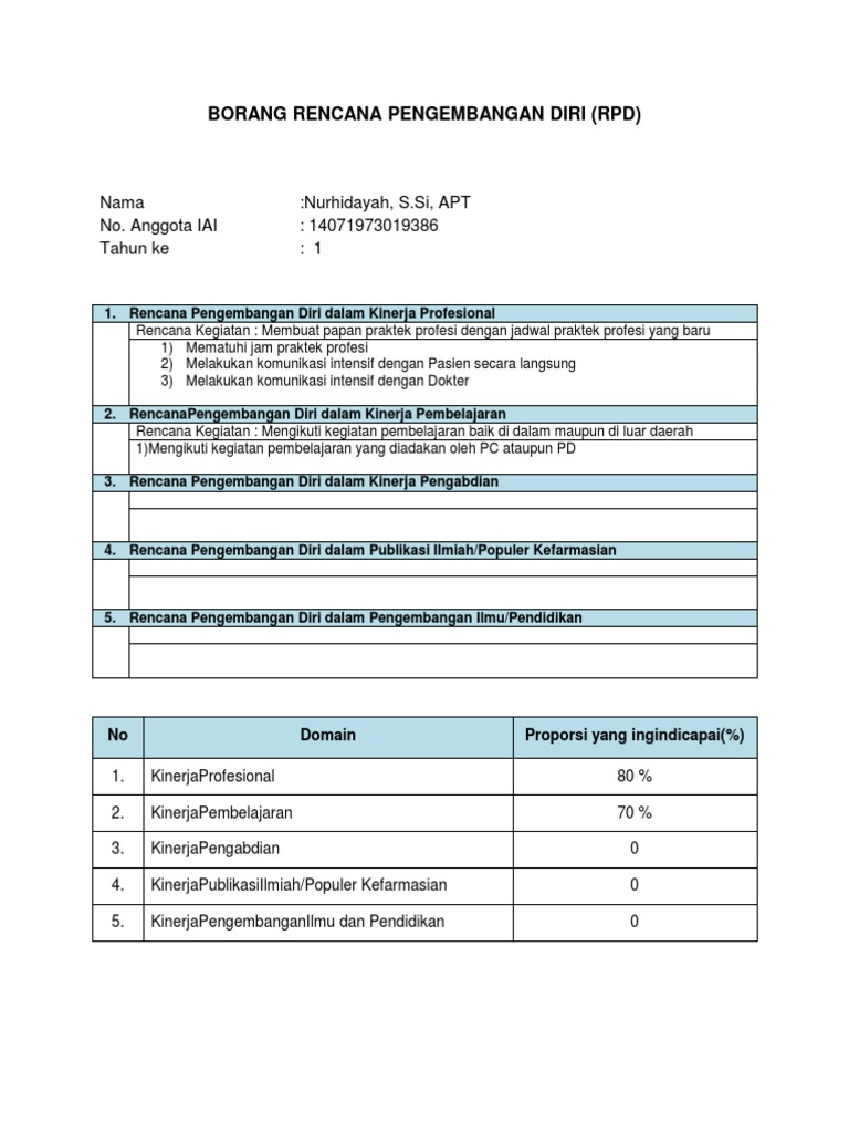 Sering kali dalam hidup kita begitu sibuk dengan kegiatan sehari hari dan jarang punya waktu untuk berpikir pentingnya untuk membuat perencanaan. Borang rencana pengembangan diri rpd 5 lampiran lampiran borang dalam log book 36 5standar prosedur operasional 6 daftar tilik skrining resep 57 patient medication record pmr 59. Borang registrasi 4 2. Borang untuk resertifikasi 1.