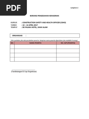 Contoh Borang Pengesahan Kehadiran