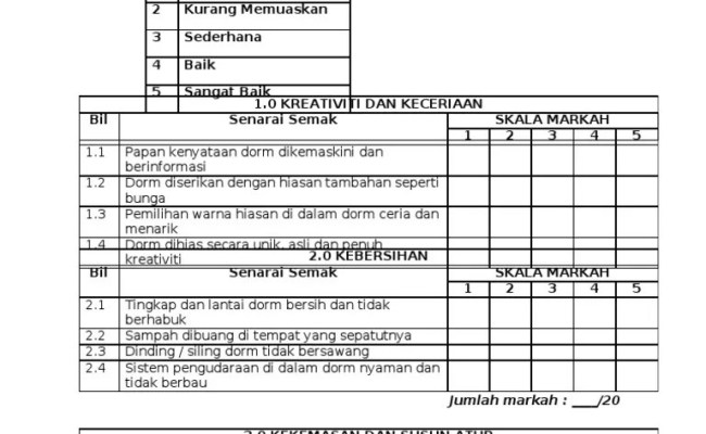 Borang penilaian kebersihan dan keceriaan blok asrama blok. Menu makanan asrama kpm 2018. Previous article senarai barang pelajar asrama. Pdf 06c profil kompetensi penyelia asrama gred n26.