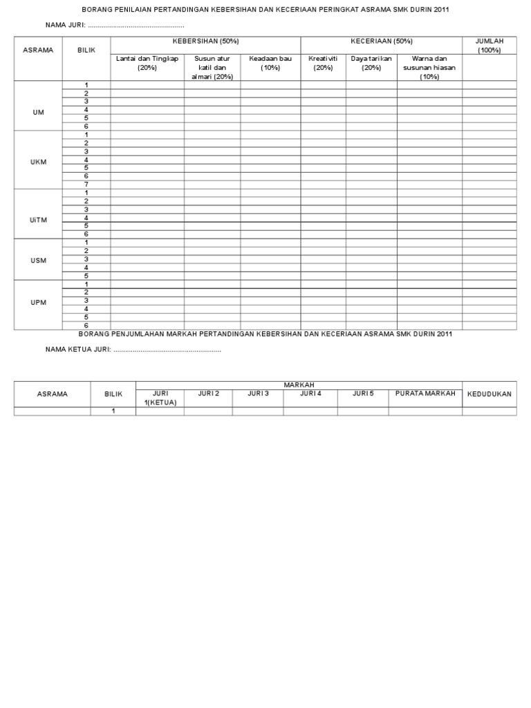 Contoh Borang Penilaian Asrama