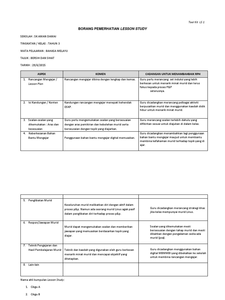 Contoh borang plc lesson study. Unknown 7 march 2019 at 15 14. Lesson study dan contoh laporan program lesson study jan 13 1 jan 12 1 jan 11 2 2014 29 november 2 nov 23 1 nov 05 1 october 4 oct 17 4 september 10 sep 28 1. Professional learning community plc merupakan pemangkin profesionalisme guru ke arah peningkatan pembelajaran murid. Borang yg perlu diisi secara individu hanyalah borang pemerhatian bagi lesson study.