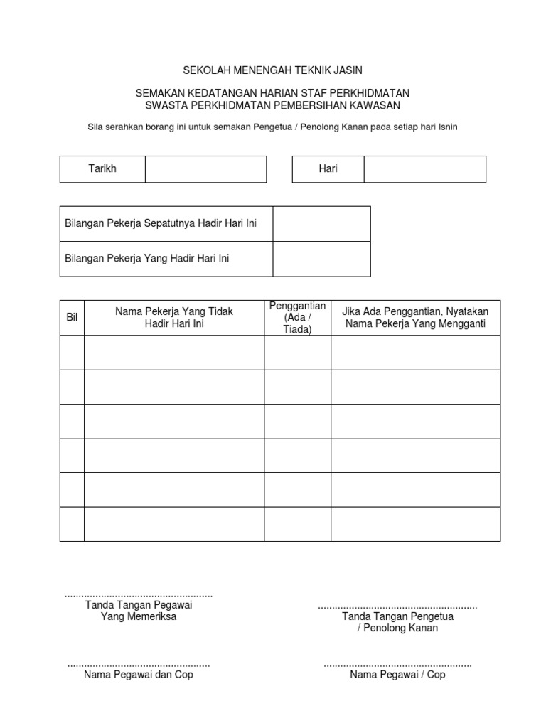 Contoh Borang Rekod Kehadiran Pekerja