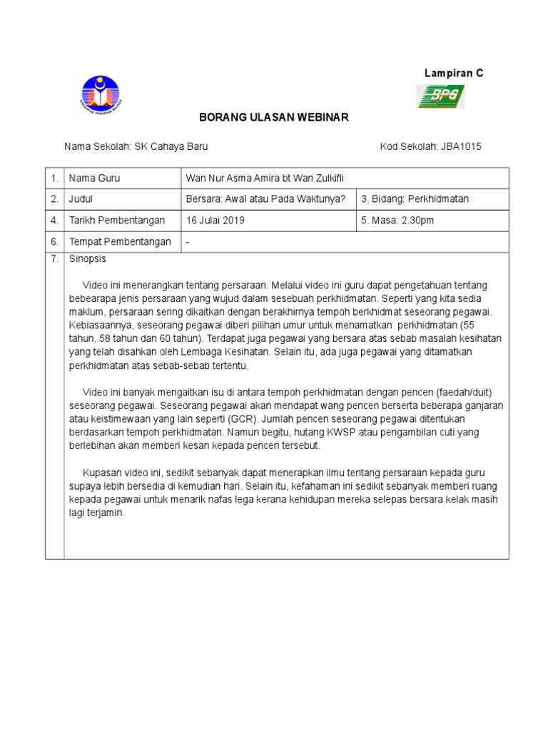 Contoh borang ulasan webinar 2020. Tapi sebelum download borang webinar splkpm biar akak tunjukkan lokasi webinar ni tersimpan. 21 hari selepas menerima pemberitahuan perayu boleh mengemukakan kepada pkcp ulasan atau hujahnya secara bertulis berhubung dengan permohonannya dan kenyataan kphdn. Saya kongsikan contoh soalan instrumen bagi pt3 pentaksiran tingkatan 3 yang akan mula digunapakai pada tahun 2014. Terdiri daripada 15 subjek seperti bahasa melayu bahasa inggeris sains matematik sejarah geografi pendidikan islam khb dan subjek bahasa lain.