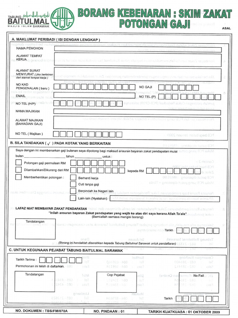 Contoh Borang Zakat