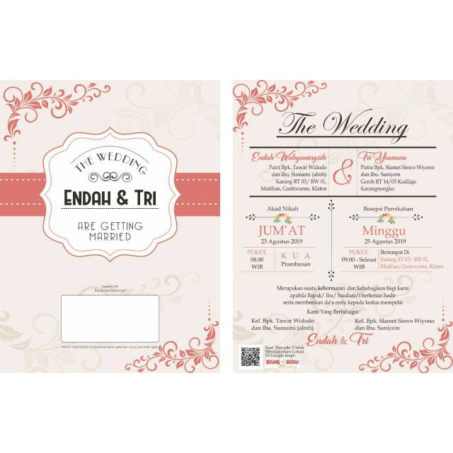 Contoh undangan pernikahan satu lembar memproduksi sebuah undangan pernikahan bukan harus tebal melimpah berita yang bertele tele pada satu lembar melulu terdapat rasa sudah lumayan bila berita berita yang kepingin terdapat sampaikan telah tersematkan seluruhnya kedalam undangan pernikahan tertera.