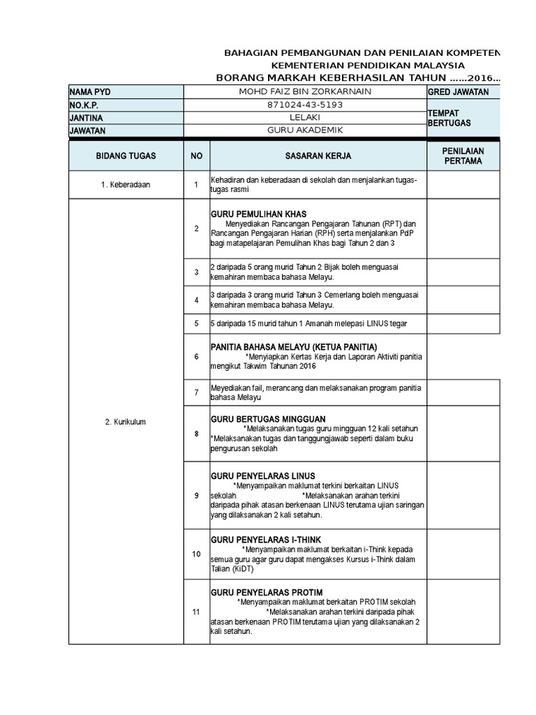 Bilangan item perlu berbincang dengan penilai pertama dan kedua. Borang keberhasilan guru 2020 di malaysia jikalau dahulu kalangan guru di malaysia akan dinilai melalui sistem laporan nilaian prestasi tahunan lnpt. Kebanyakan perbincangan yang timbul adalah tiada contoh untuk mereka jadikan sandaran pengisian borang masing masing. Contoh pengisian borang pbppp keberhasilan gpk pentadbiran gpk hal ehwal murid gpk kokurikulum 1 hingga 30 jun 2016 merupakan tarikh di mana semua pegawai perkhidmatan penididikan akan dinilai dengan penilaian bersepadu pegawai perkhidmatan pendidikan pbppp untuk diisi skor masing masing di dalam laman web eprestasi moe gov my.