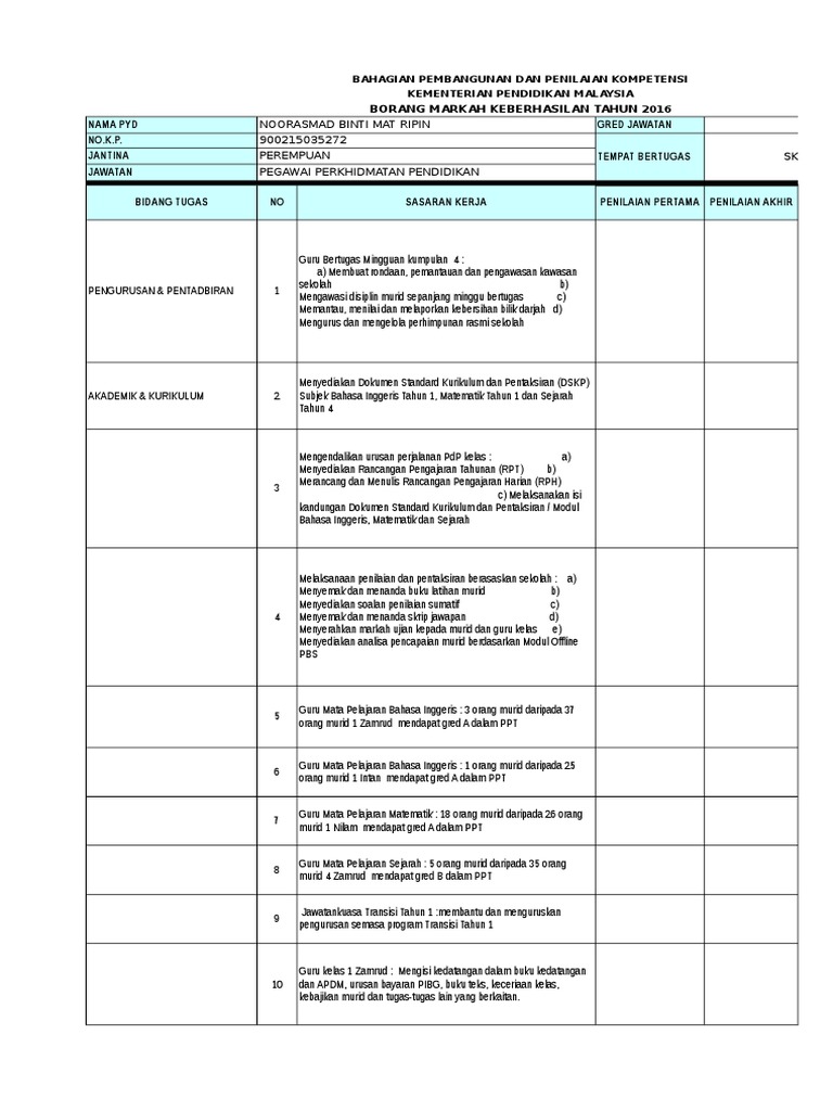 Contoh pengisian borang keberhasilan guru 2018. Sebelum itu untuk pengetahuan umum borang keberhasilan ini adalah satu borang yang perlu diisi oleh setiap guru bagi menzahirkan keberhasilan dan usaha masing masing dalam tempoh yang diberikan. Assalamualaikum dan selamat sejahtera. Perkongsian kali melibatkan contoh contoh sasaran keberhasilan yang disediakan mengikut jawapan dan skop tugas pegawai perkhidmatan pendidikan ppp. Skor yang diberi akan membantu dalam memberi gambaran keberhasilan seseorang guru dalam menjalankan tugas.