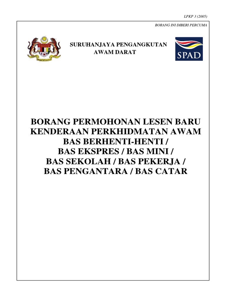 Spad borang permohonan baharu. Borang permohonan permohonan baharu lesen pengendali permit kenderaan perkhidmatan awam bas berhenti henti bas ekspres bas sekolah bas pekerja ma kluman 1. Spad lso 029 rev1 borang permohonan permohonan baharu lesen perniagaan pengantaraan permit kenderaan e hailing makluman 1. Borang permohonan permohonan baharu lesen pengendali permit kenderaan kenderaan barangan lesen pembawa a c makluman 1. Klik butang permohonan baharu untuk membuat permohon.